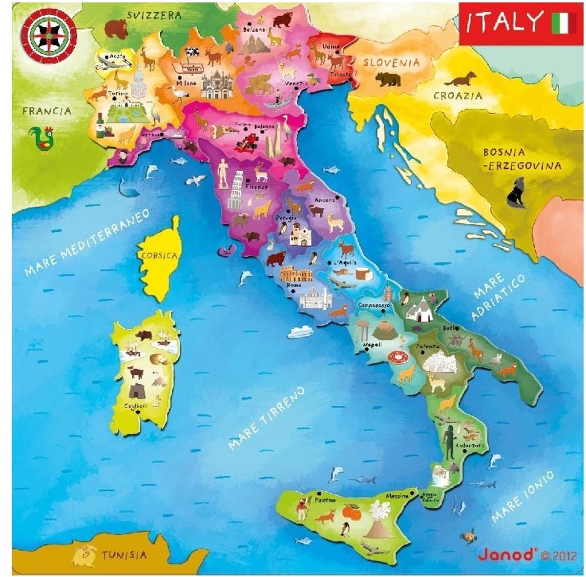 Janod je známá značka puzzle z Francie. Tato značka je známá svými kvalitními, vzdělávacími hračkami a hlavolamy, které mají často charakteristický francouzský šmrnc a design. Janod se vyznačuje tím, že nabízí širokou škálu hlavolamů vhodných pro různé věkové skupiny, od batolat až po starší děti. Jejich sortiment zahrnuje dřevěné puzzle, podlahové puzzle, puzzle s tématy jako jsou zvířata, doprava, mapy světa a vesmír. Tyto hádanky nejsou určeny pouze jako zábava, ale také k podpoře vzdělávacích hodnot, jako je jemná motorika, dovednosti při řešení problémů, trénování paměti a koordinace ruka-oko. Pozoruhodnou vlastností puzzle Janod je kvalita provedení a materiálu. Často používají jasné barvy a atraktivní obrázky, aby upoutaly pozornost dětí a podnítily jejich zájem o hádanky. Janod je také známý svými výrobními procesy šetrnými k životnímu prostředí, které často využívají udržitelné materiály.
